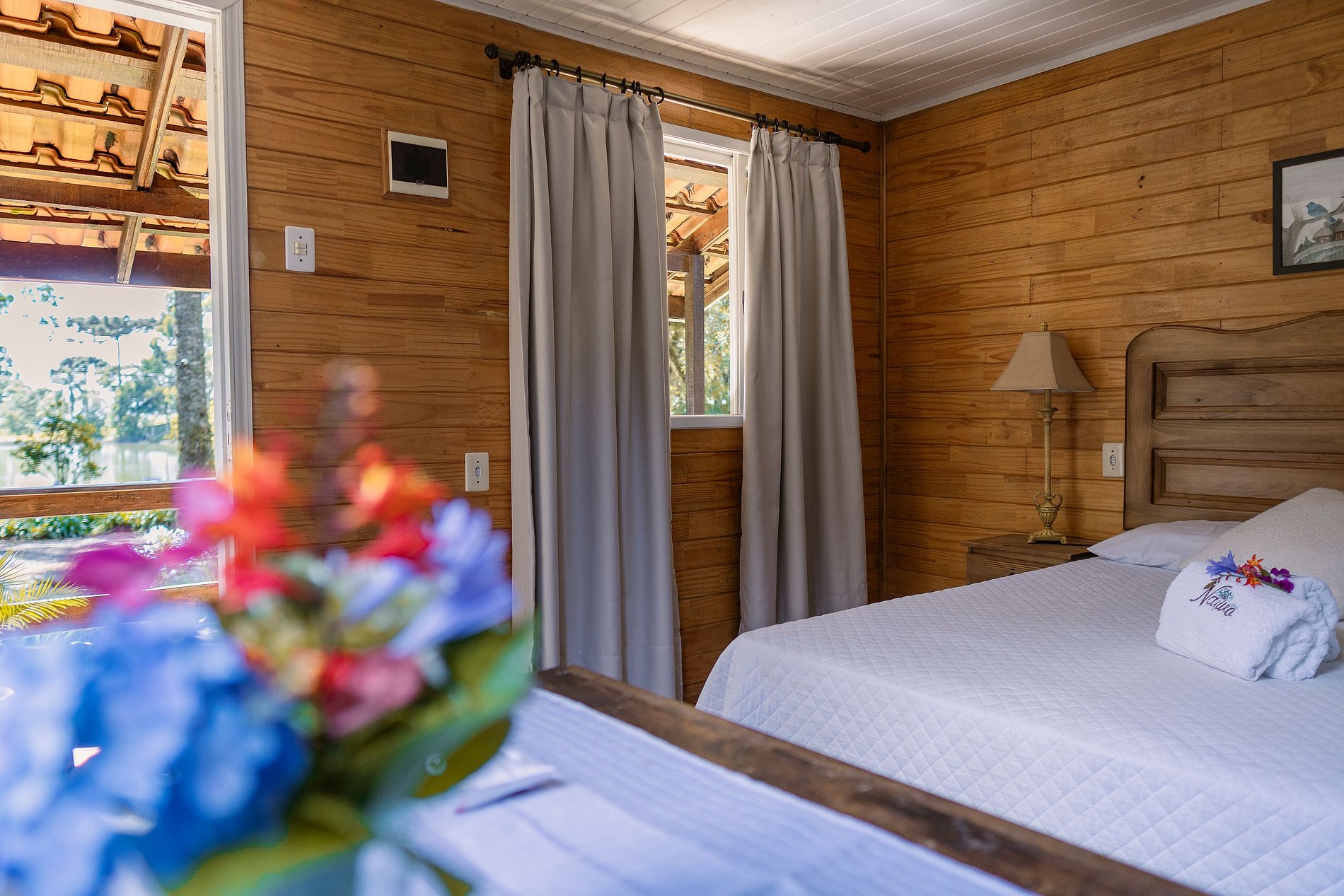 Aconchegante e funcional, o Chalé N1 é ideal para quem busca descanso e tranquilidade. Conta com cama de casal, banheiro privativo, roupa de cama e toalhas, além de uma copa equipada com frigobar, micro-ondas, chaleira e utensílios básicos. Com ambiente em madeira e iluminação natural, proporciona uma experiência acolhedora, perfeita para desacelerar e se conectar com a natureza.