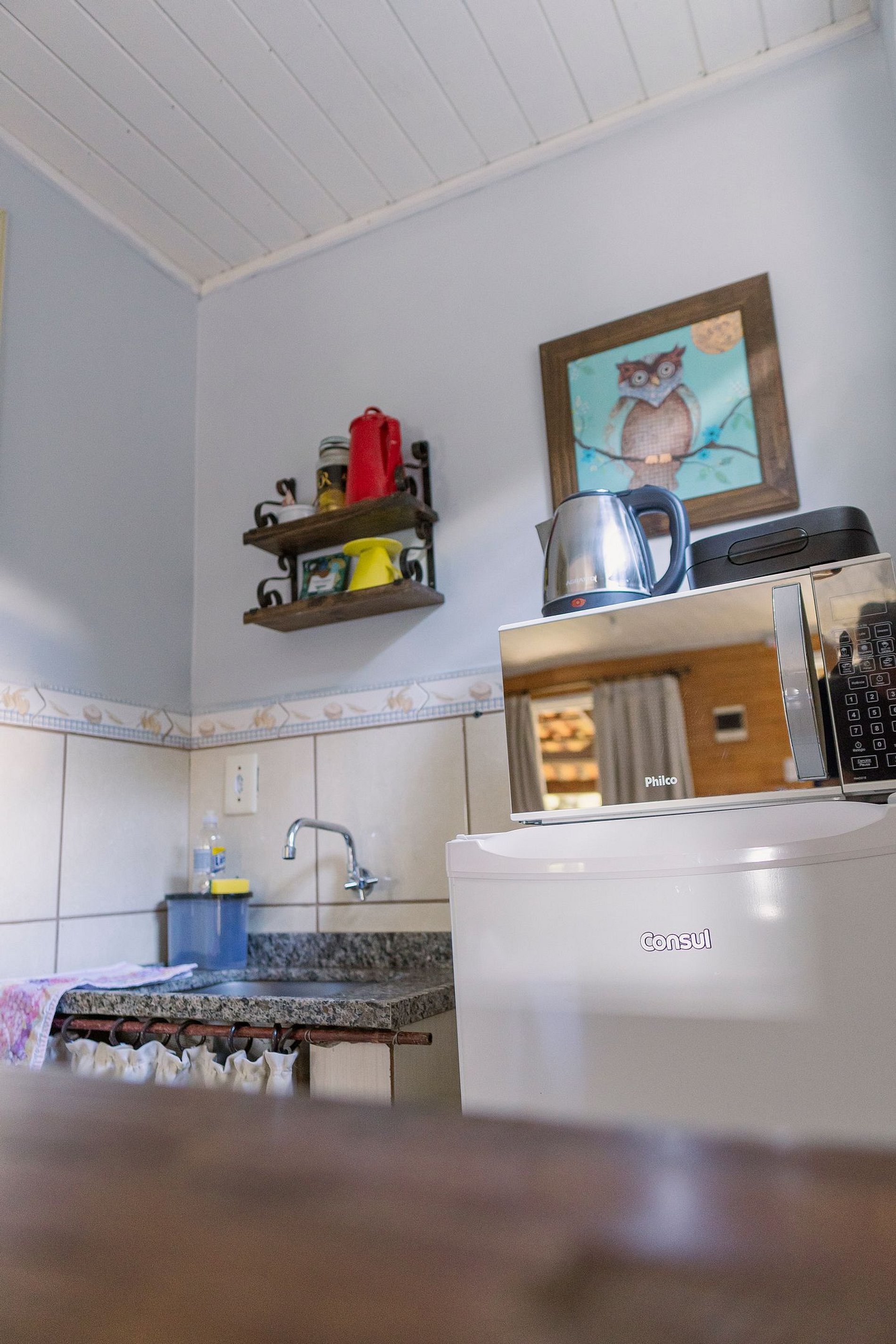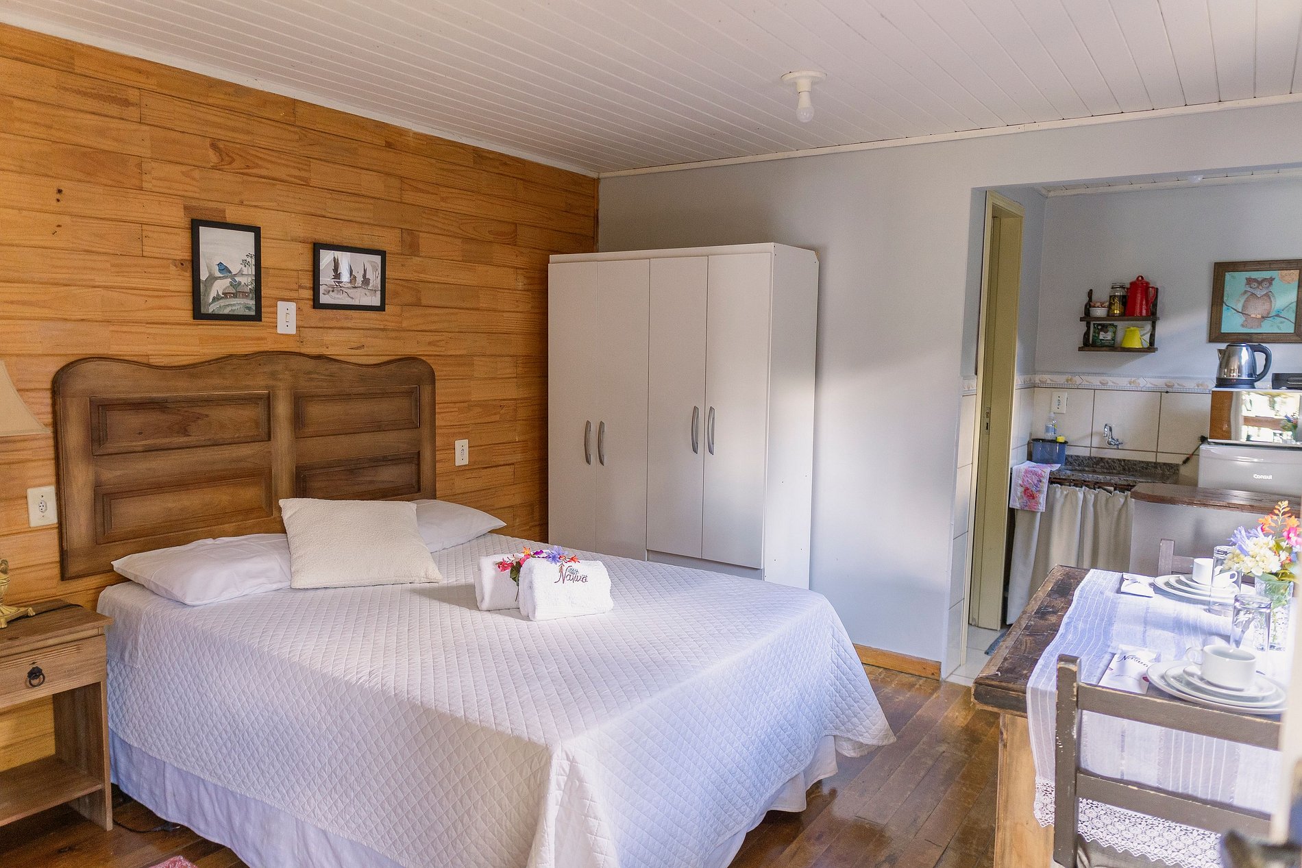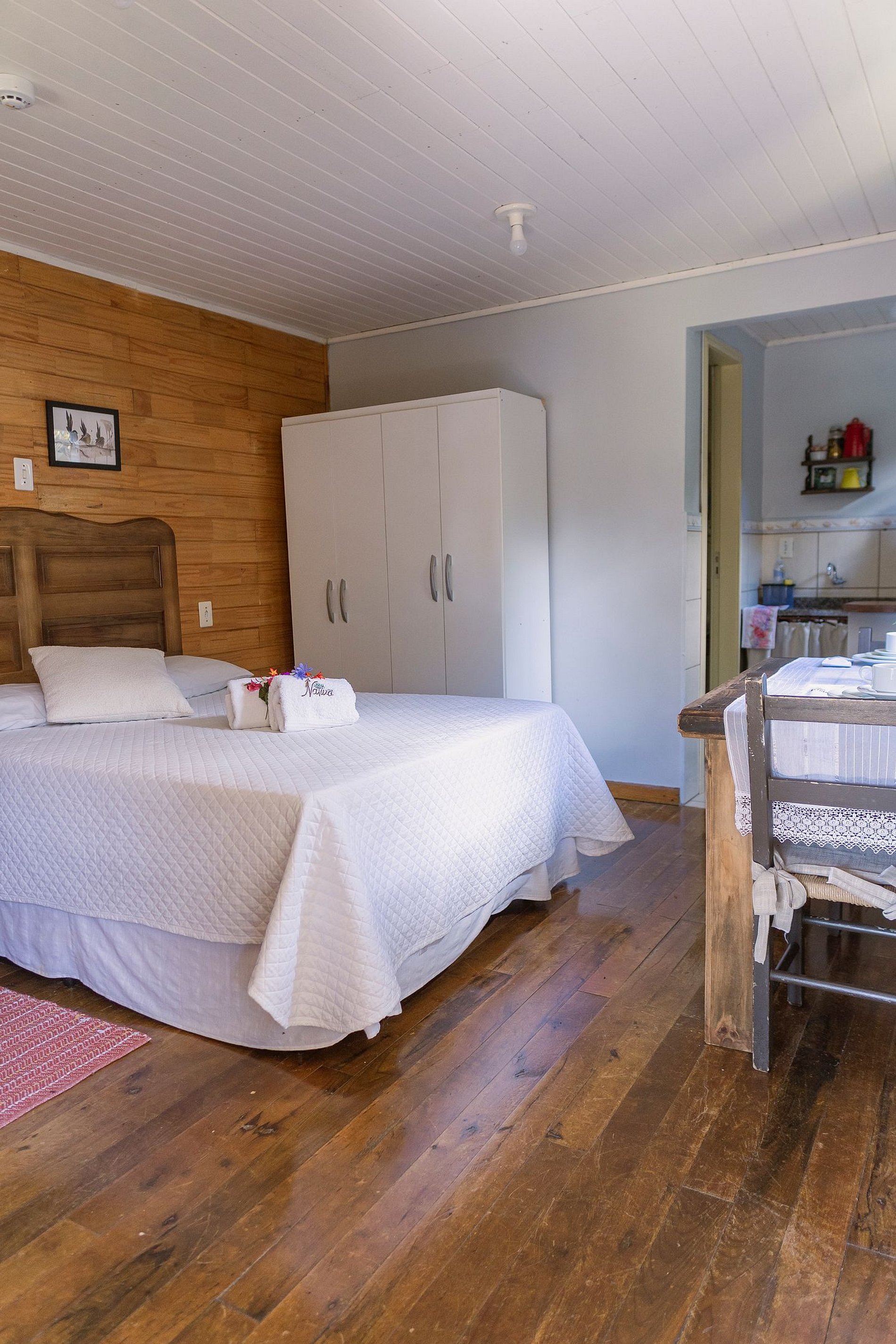 O diferencial do espaço está no aconchego da madeira e na atmosfera tranquila em meio à natureza, que convida a desacelerar. Cada detalhe foi pensado para o conforto do hóspede, com cama confortável, ambiente limpo e organizado, além de uma copa funcional para pequenas refeições. A luz natural e o silêncio tornam a experiência ainda mais relaxante e acolhedora.